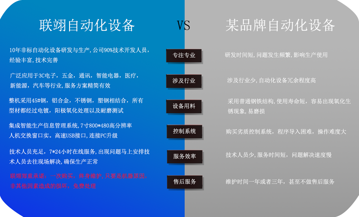 以后再說X東莞市聯(lián)翊智能設(shè)備科技有限公司創(chuàng)于2012年,專業(yè)研發(fā)制造自動組裝機(jī),自動裝配線等非標(biāo)自動化設(shè)備.